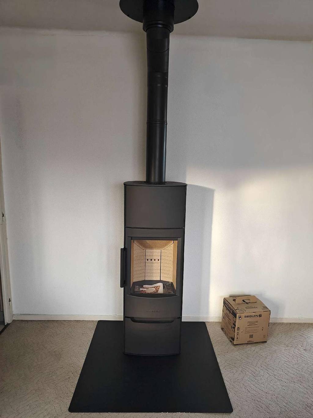 La maison est en cours de rénovation. Le client souhaitait installer un chauffage au bois alliant design contemporain, haute performance énergétique et confort durable. Dans ce cadre, nous avons conseillé le poêle WIKING Miro 6, un modèle haut de gamme de la gamme Seguin / Hwam, et assuré son installation avec un conduit adapté.