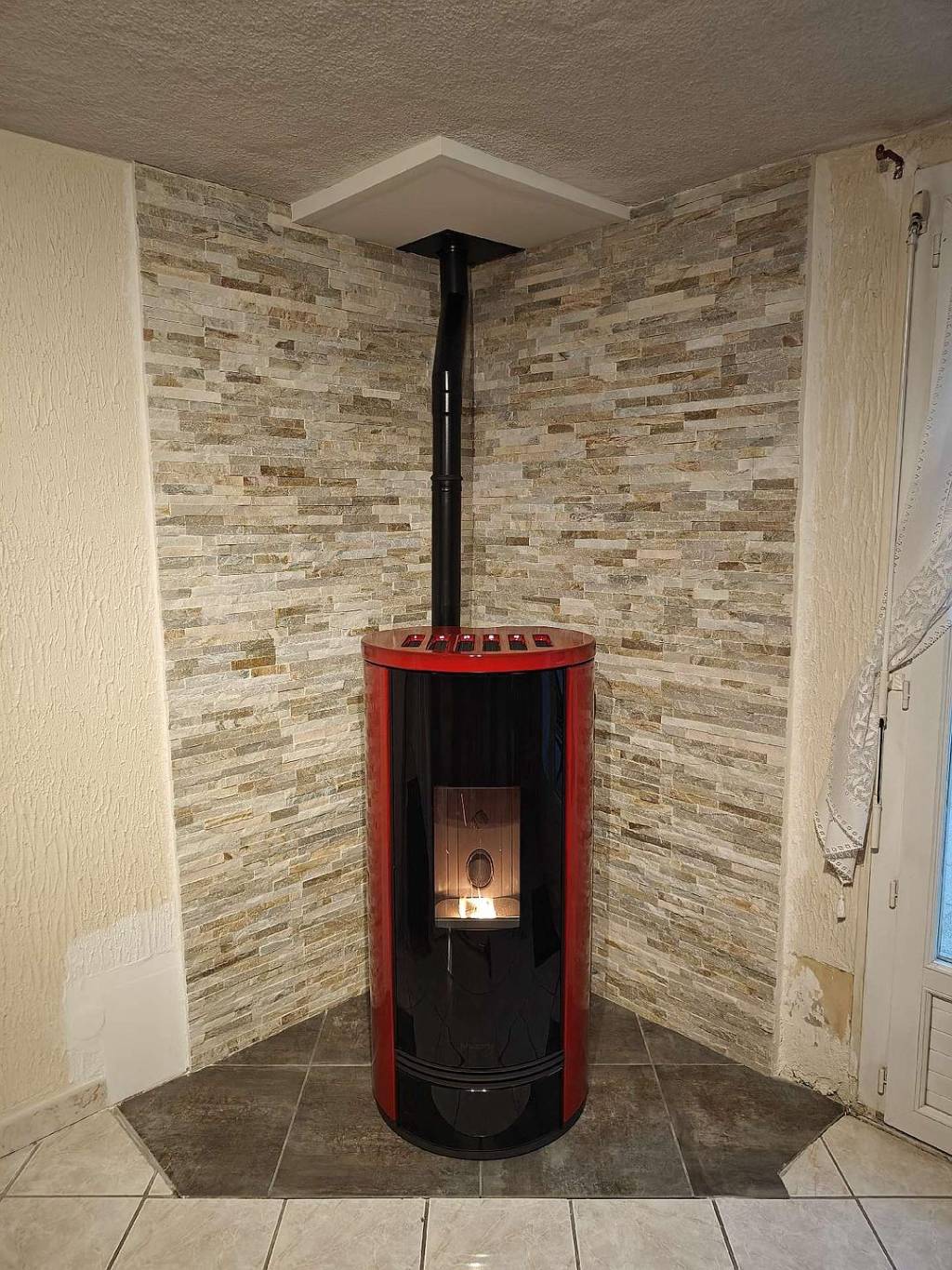 Ce modèle, habillé d’une élégante céramique rouge lave, s’intègre parfaitement au style chaleureux de leur habitation tout en apportant un véritable plus esthétique et thermique.